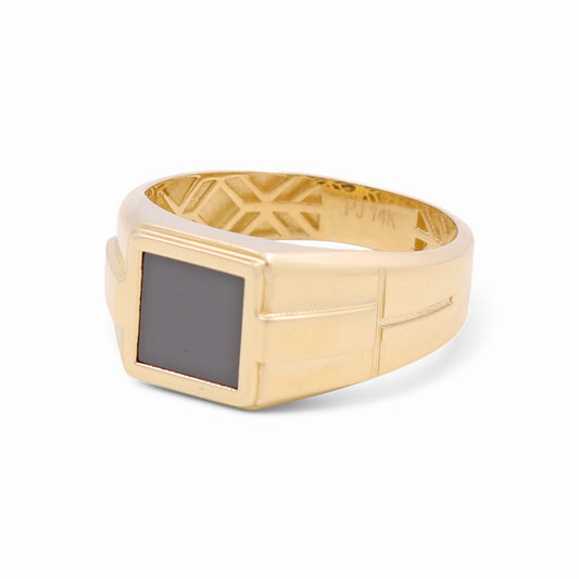 14K Yellow Gold SQ Fashion Men's Ring With Onyx / Size: 11.5 / Weight: 5.2 GR / CPMR4FS