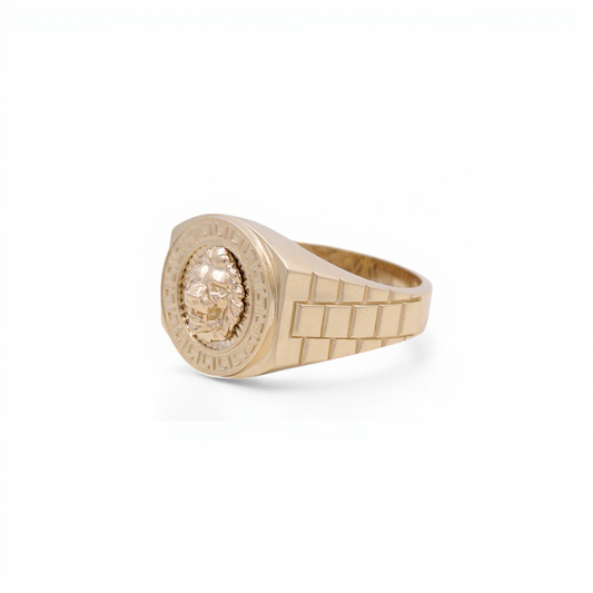 10K Yellow Gold RD Lion Men's Ring with Greek Design / Size: 11.5 / Weight: 5.4 GR / CQMR0LN-3