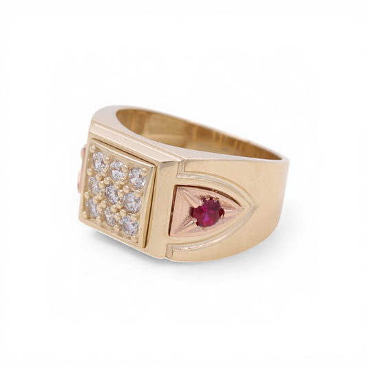 14K Yellow and Rose Gold Fashion Men's Ring with Red and White Cz / Size: 11.5 / Weight: 6.1 GR / DQMRTT4FS