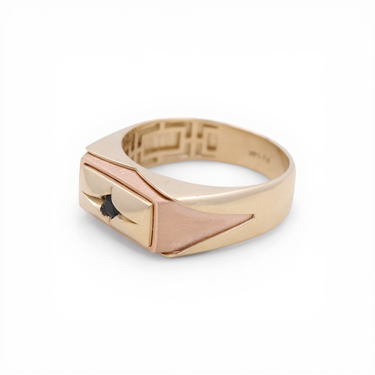 14K Yellow and Rose Gold Fashion Men's Ring with Black Cz / Size: 11.5 / Weight: 4.4 GR / DQMRTT4FS-3