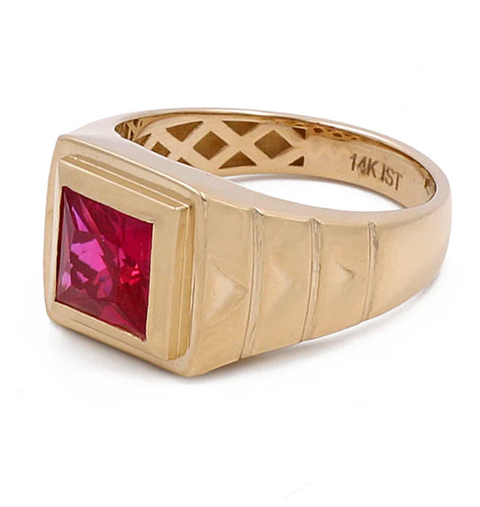 14K Yellow Gold SQ Fashion Men's Ring with Red Cz / Size: 11.5 / Weight 8.3 GR / BOMR4FS-49