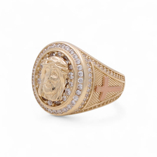 14K Yellow and Rose Gold Christ Head Men's Ring with White Cz / Size: 10.5 / Weight: 9.4 GR / DQMRTT4CR
