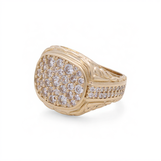 14K Yellow Gold Men’s Ring Oval Rosetta Style with White Stones / Size 11.5 / Weight: 12.3 GR / DQMR4FS-2