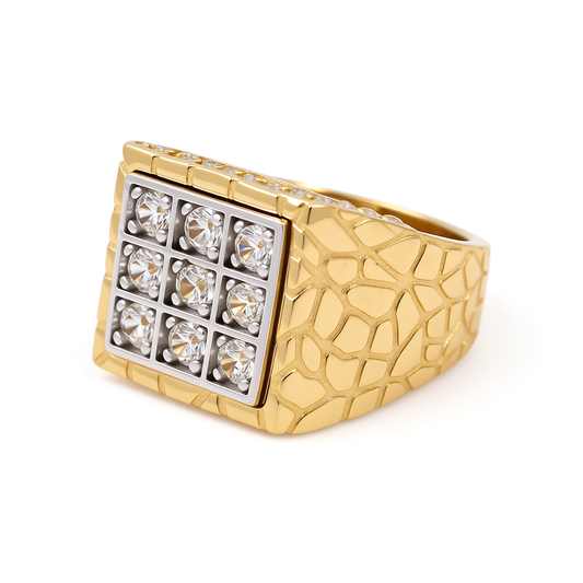 14K Yellow and White Gold SQ Nugget Men’s Ring / Stone: Cz / Size 10.5 / Weight: 8.4 GR / COMRTT4FS-5