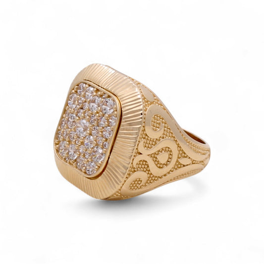 14K Yellow Gold Fashion SQ Men's Ring with Cz and Design / Size: 12 / Weight: 9.8 GR / DQMR4FS-7