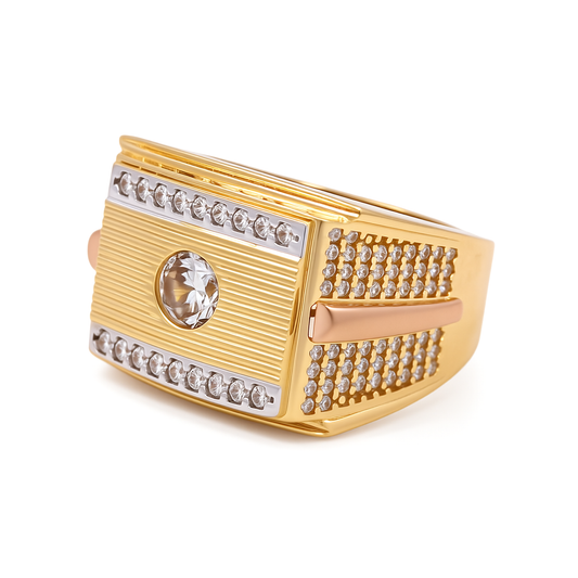 14K Yellow and Rose Gold Men’s Fashion Ring / Stone: Cz / Size 10 / Weight: 10.7 GR / COMRTT4FS-4
