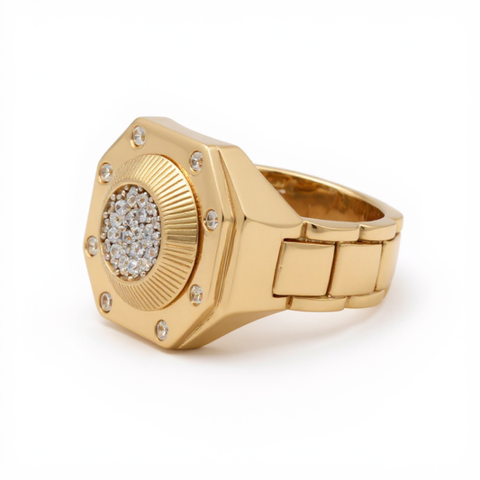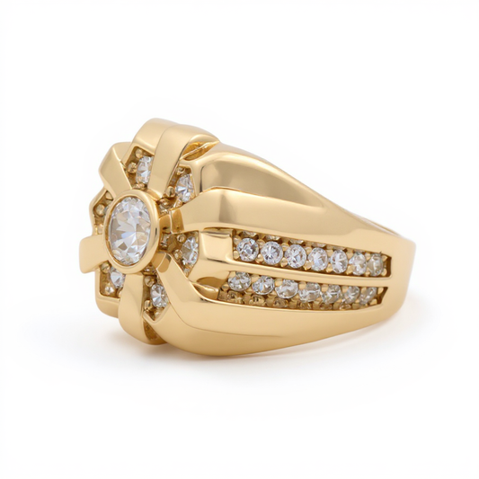 14K Yellow Gold Fashion RX Men’s Ring with White Stones / Size 11 / Weight: 11.6 GR / DOMR4RX