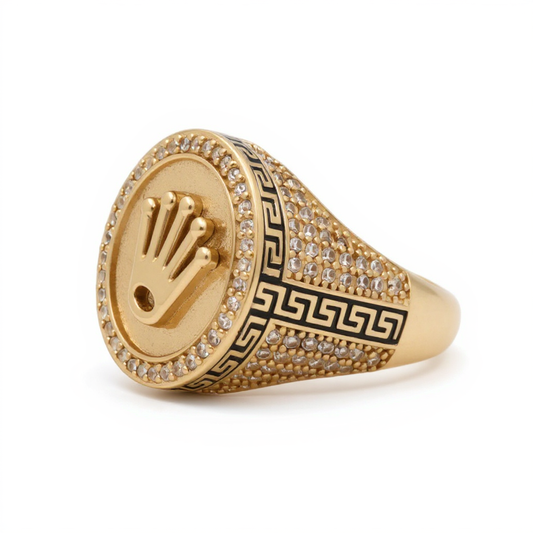 14K Yellow Gold Fashion RX Men's Ring with Greek and Cz / Size 10 / Weight 9.2 GR / DOMR4RX-1