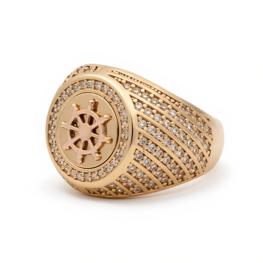 14K Yellow and Rose Gold Ship Rudder Men's Ring with Cz / Size 12 / Weight 8.3 GR / DOMRTT4FS-1