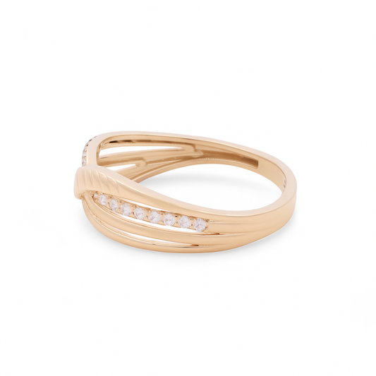 10K Yellow Gold Ribbon Women's Ring with Cz / Size: 7 / Weight: 5.2 GR / P01R-67