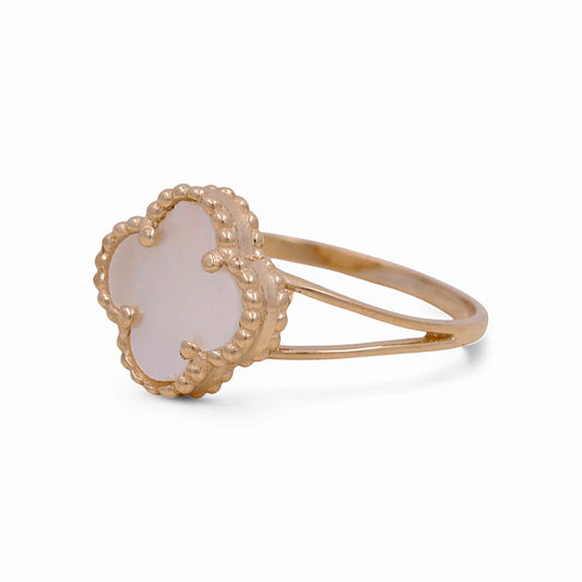 14K Yellow Gold Women’s Mother of Pearl Clover Ring / Size: 7 / Weight: 2.1 GR / BOWR4CLV-12