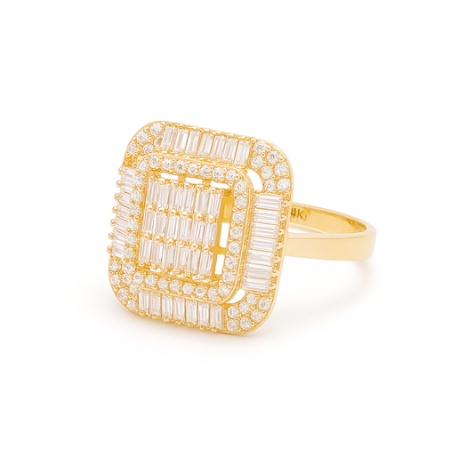 14K Yellow Gold Fashion Baguette Women's Ring with White Stones / Size: 7.5 / Weight: 4.5 GR / DQWR4FS-51