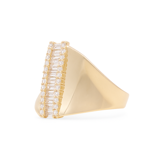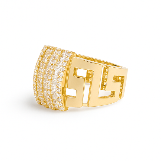 14K Yellow Gold Fashion Baguette Women's Ring with Greek and White Stones / Size: 8 / Weight: 4.8 GR / DQWR4FS-48