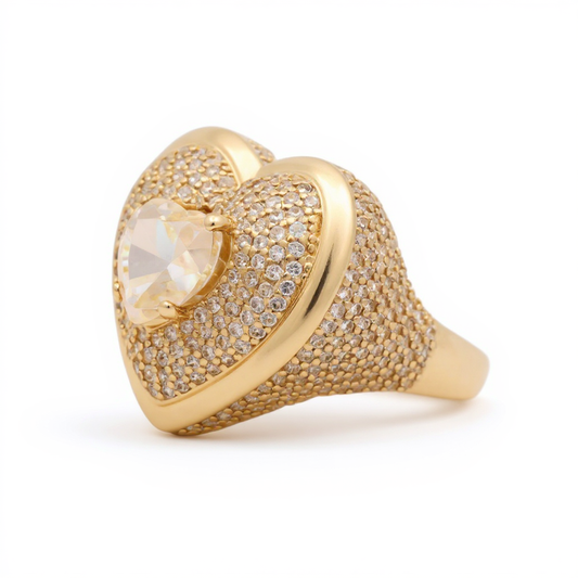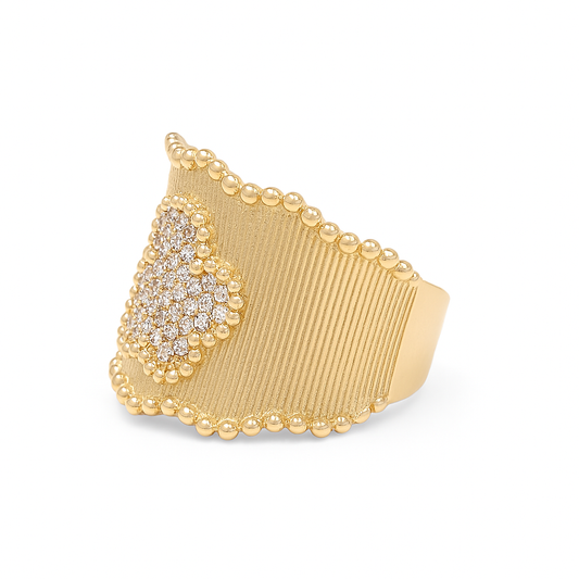 14K Yellow Gold Women's Fashion Heart Ring with Cz / Size: 8 / Weight: 4.6 GR / DOWR4HR-3