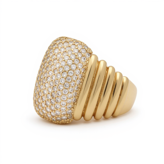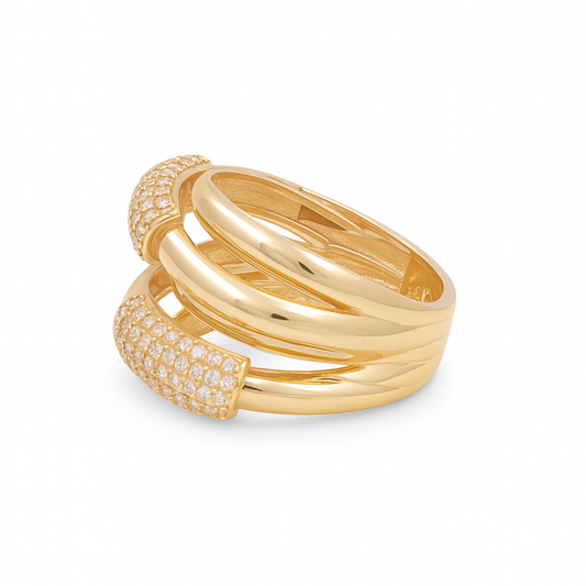 14K Yellow Gold Fashion Women's Ring with White Cz / Size: 8 / Weight: 4.6 GR / DQWR4FS-43