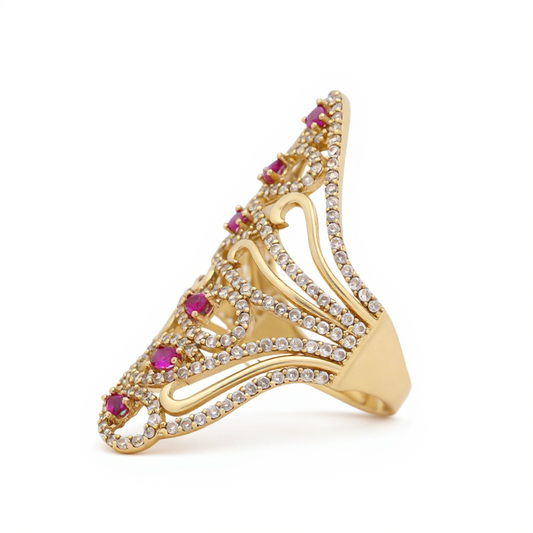 14K Yellow Gold Fashion Women's Ring with Pink Cz / Size 8 / Weight: 5.4 GR / DOWR4FS-13