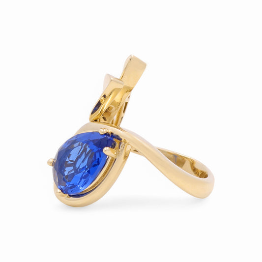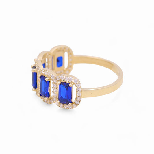 14K Yellow Gold Fashion Women's Ring with Blue Cz / Size: 9 / Weight: 6.4 GR / CPWR4FS-10