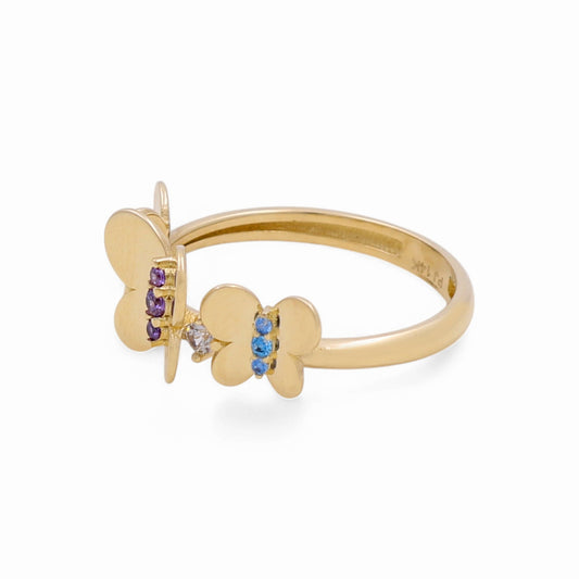 14K Yellow Gold Three Butterflies Women's Ring with Cz / Size: 8 / Weight: 2.4 GR / CPWR4BT