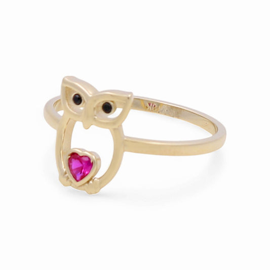 14K Yellow Gold Owl Women's Ring with Pink CZ / Size: 7 / Weight: 1.9 GR / CPWR4BO
