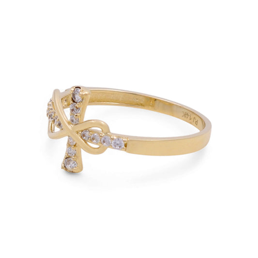 14K Yellow Gold Egyptian Cross Women's Ring with Cz / Size: 8 / Weight: 1.5 GR / CPWR4CS