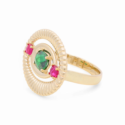 14K Yellow Gold Fashion Women's Ring with Pink and Green Cz / Size: 9 / Weight: 5.5 GR / CPWR4FS-15