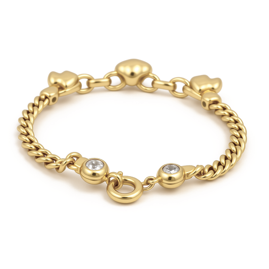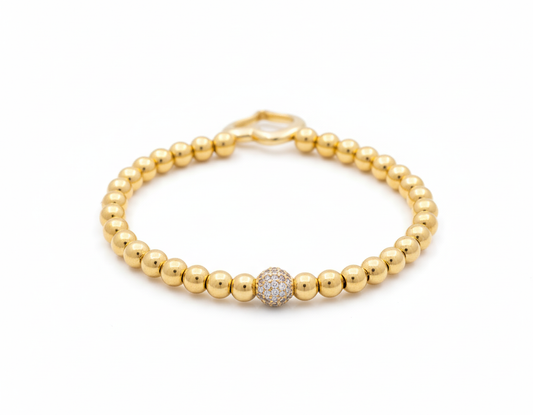 10K Yellow Gold Balls with Heart Women's Bracelet / Stone: Cz / Weight: 8.4 GR / P85B-36