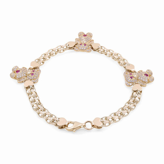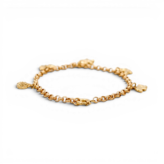 14K Yellow Gold Fashion Bear Women's Bracelet / Stone: CZ /Size: 7” / Weight: 9.1 GR