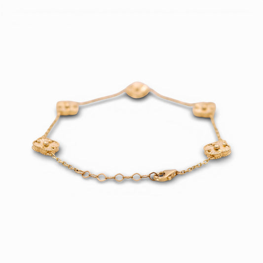 14K Yellow Gold Women's Bracelet with Six Mother of Pearl Clover / Size: 8.5" 9mm / Weight: 3.8 GR / BOWB4CLV-8