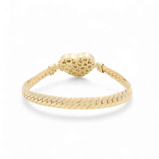 14K Yellow Gold Fashion Cuban Link Women's Bracelet with Heart and Cz / Size: 7.5" / Weight: 11 GR / DPWB4CLHR