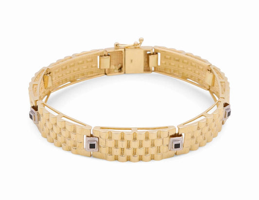 14K Yellow and White Gold Fashion Men's Bracelet / Size: 9.5mm 8" / Weight: 23.5gr / CSMB4FS-5