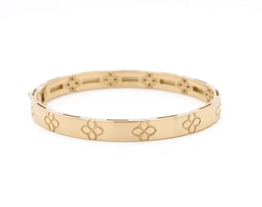 14K Yellow Gold SemiSolid Flower Bangle Bracelet / Weight: 22.5 GR