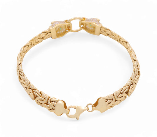 10K Yellow Gold Women's Fashion Byzantine Link Bracelet with Panther / CZ / Size: 7.5" / Weight: 10.5 GR