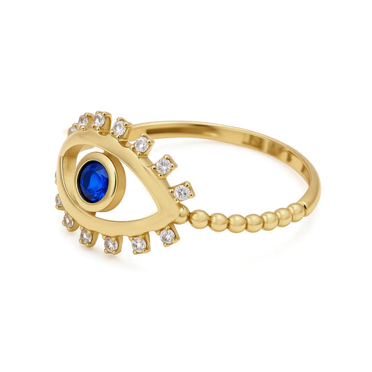 14K Yellow Gold Eye Women's Ring with Blue Cz / Size: 7.5 / Weight: 1.2 GR