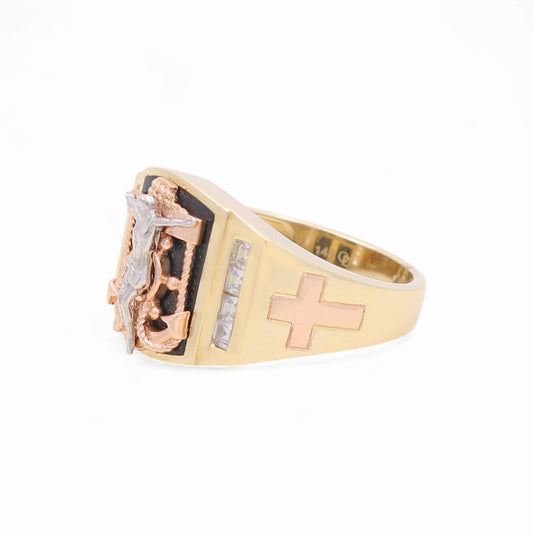 14k Three Square Christ Men's Ring with Cz / Size: 10 / Weight 8.9 GR /COMR4RCT3TOXCRCZ