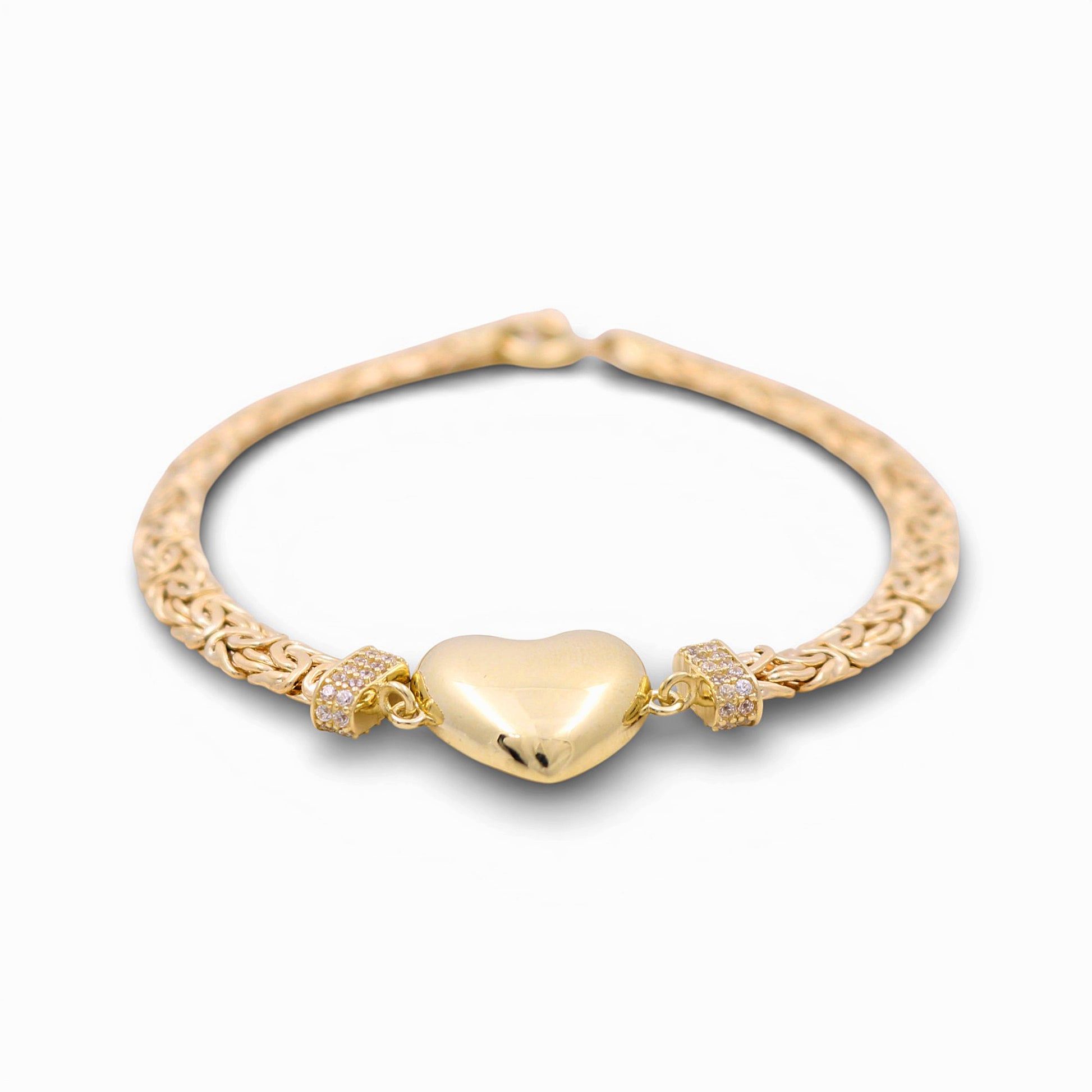 10K Yellow Gold Byzantine Link Women's Bracelet with Heart / Stone: Cz / Size: 7.5" / Weight: 5.8 GR / DQWB0BZHR-1
