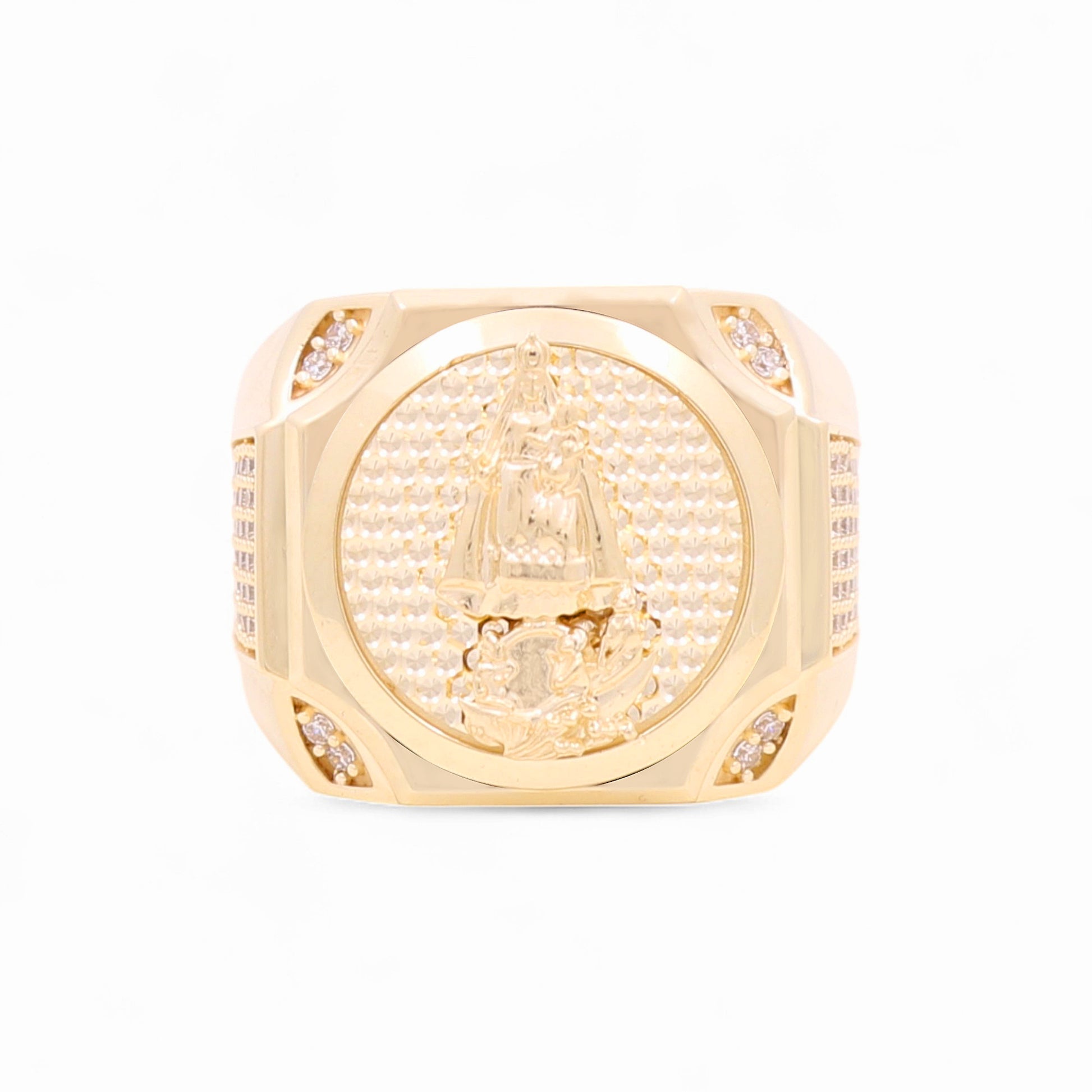 10K Yellow Gold Virgen de la Caridad Men's Ring with Cz / Size: 11 / Weight: 9.8 GR / 711-99999
