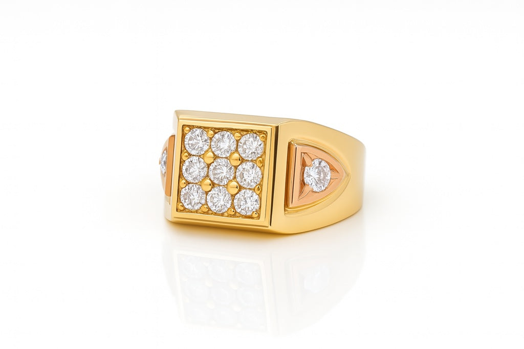 14K Yellow and Rose Gold Fashion Men's Ring with White Cz / Size: 10.5 / Weight: 6.2 GR / DQMRTT4FS