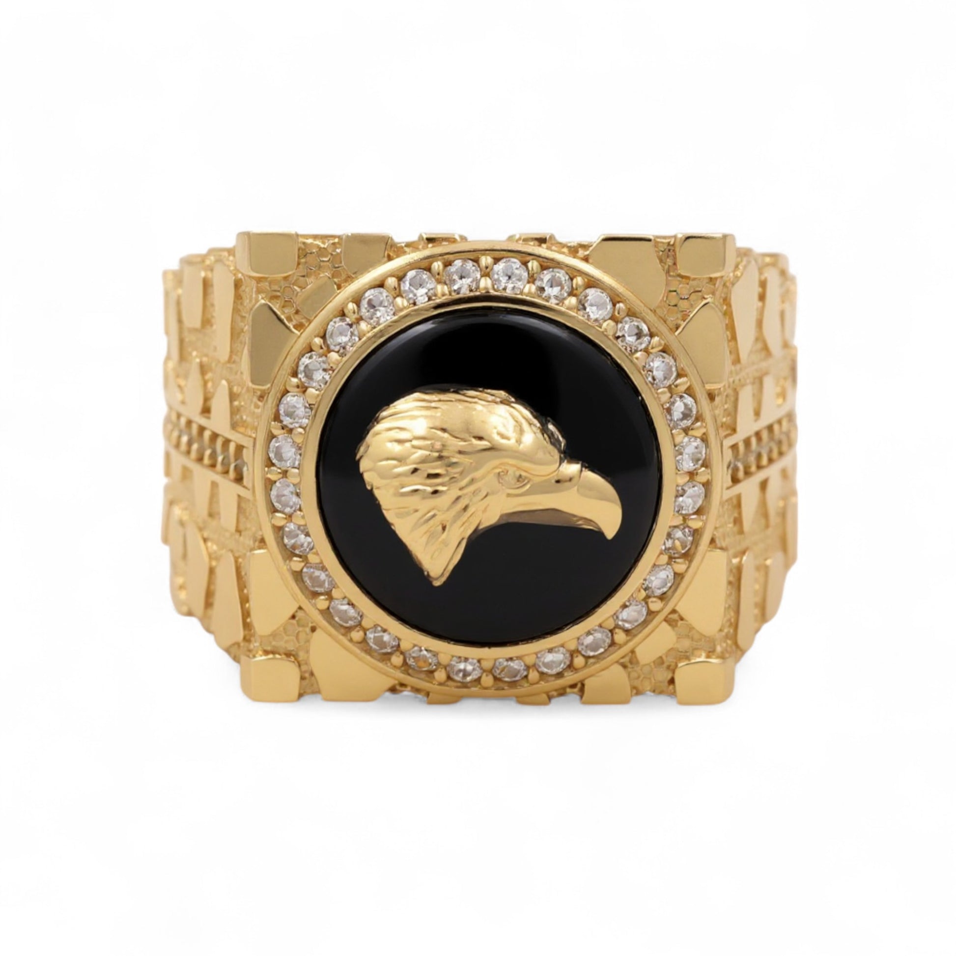 14K Yellow Gold Eagle Men's Ring with Onyx and CZ