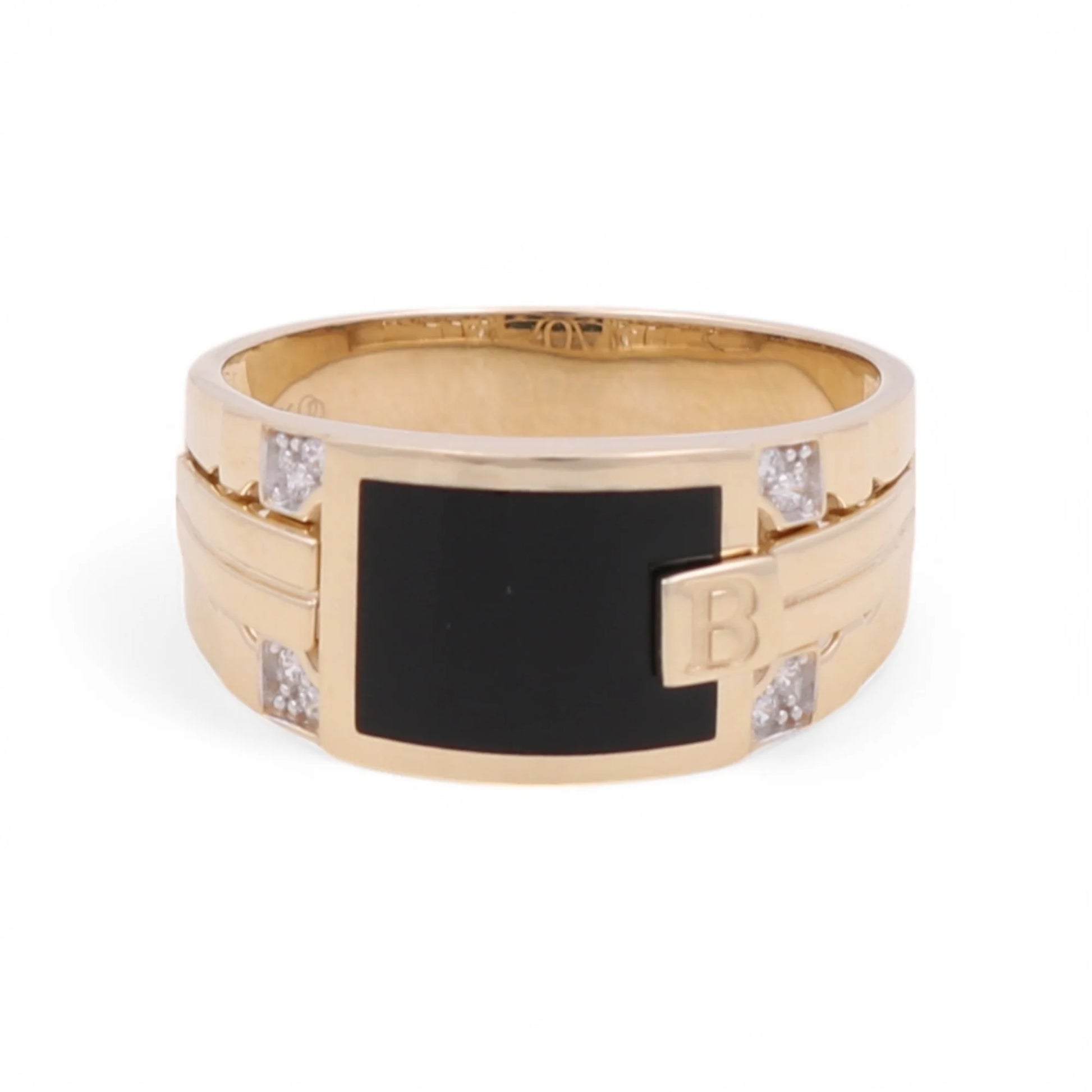 Elevate your style with our 14K Yellow Gold Fashion Men's Ring featuring a striking Onyx stone and sparkling Cz accents. This size 10 ring weighs in at 5.6 GR, making it a bold and luxurious accessory for any occasion. With its unique design and high-quality materials, our KEMR4FS-7 ring is sure to impress.