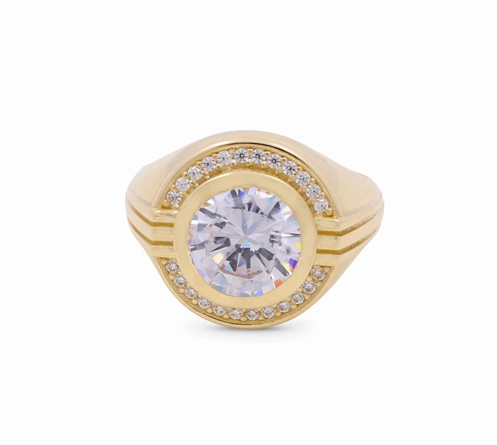 14K Yellow Gold Fashion Round Men's Ring with White Cz / Size 10 / Weight: 8.4 GR / BOMR4FS-40