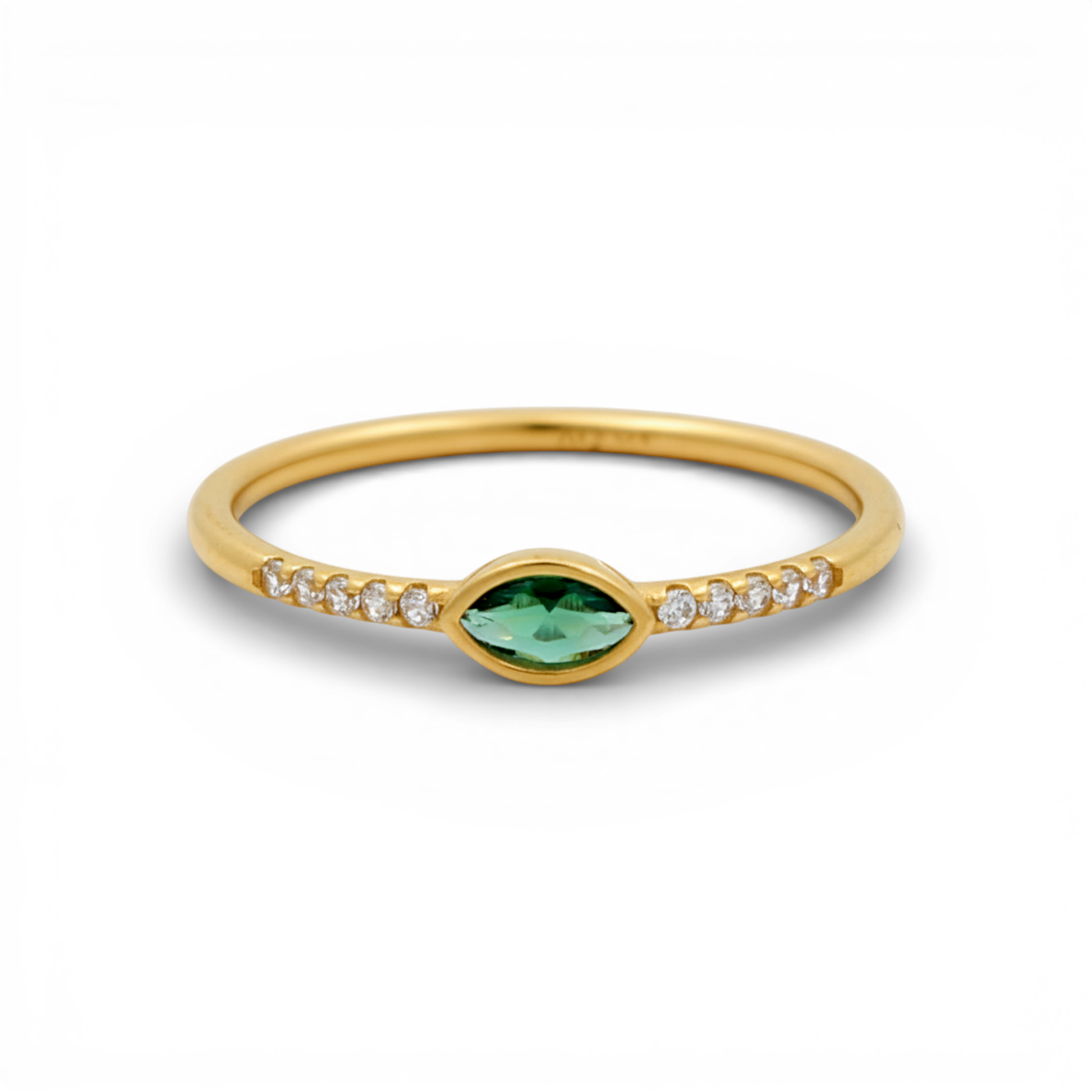 14K Yellow Gold Fashion Women's Ring with Green Cz / Size: 8 / Weight: 1.2 GR