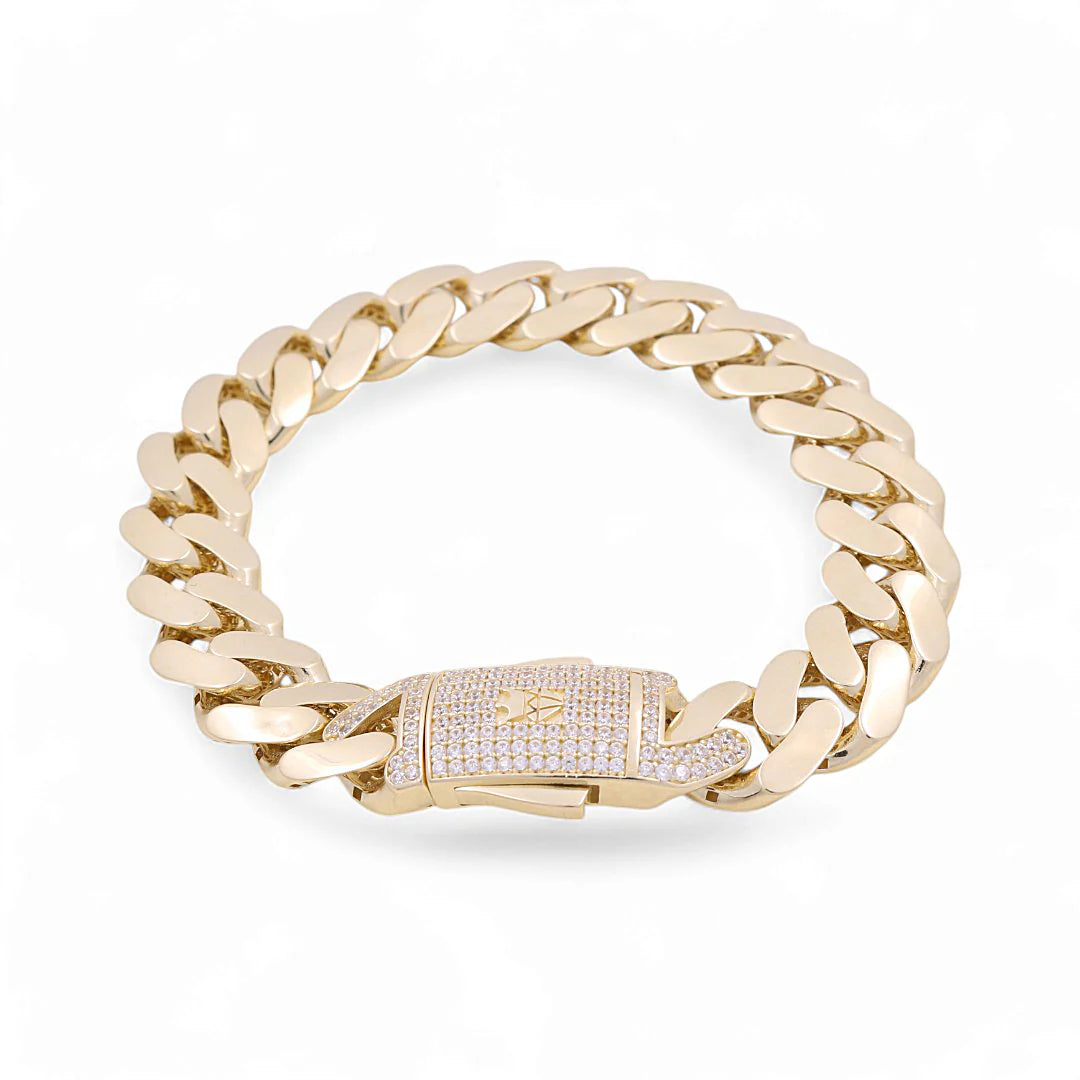 This 14K yellow gold men’s bracelet showcases the iconic Monaco link in a striking 15mm semi-solid design, elevated with sparkling cubic zirconia for an unmistakable touch of brilliance. Rugged yet refined, it’s crafted for men who want their style to command attention.