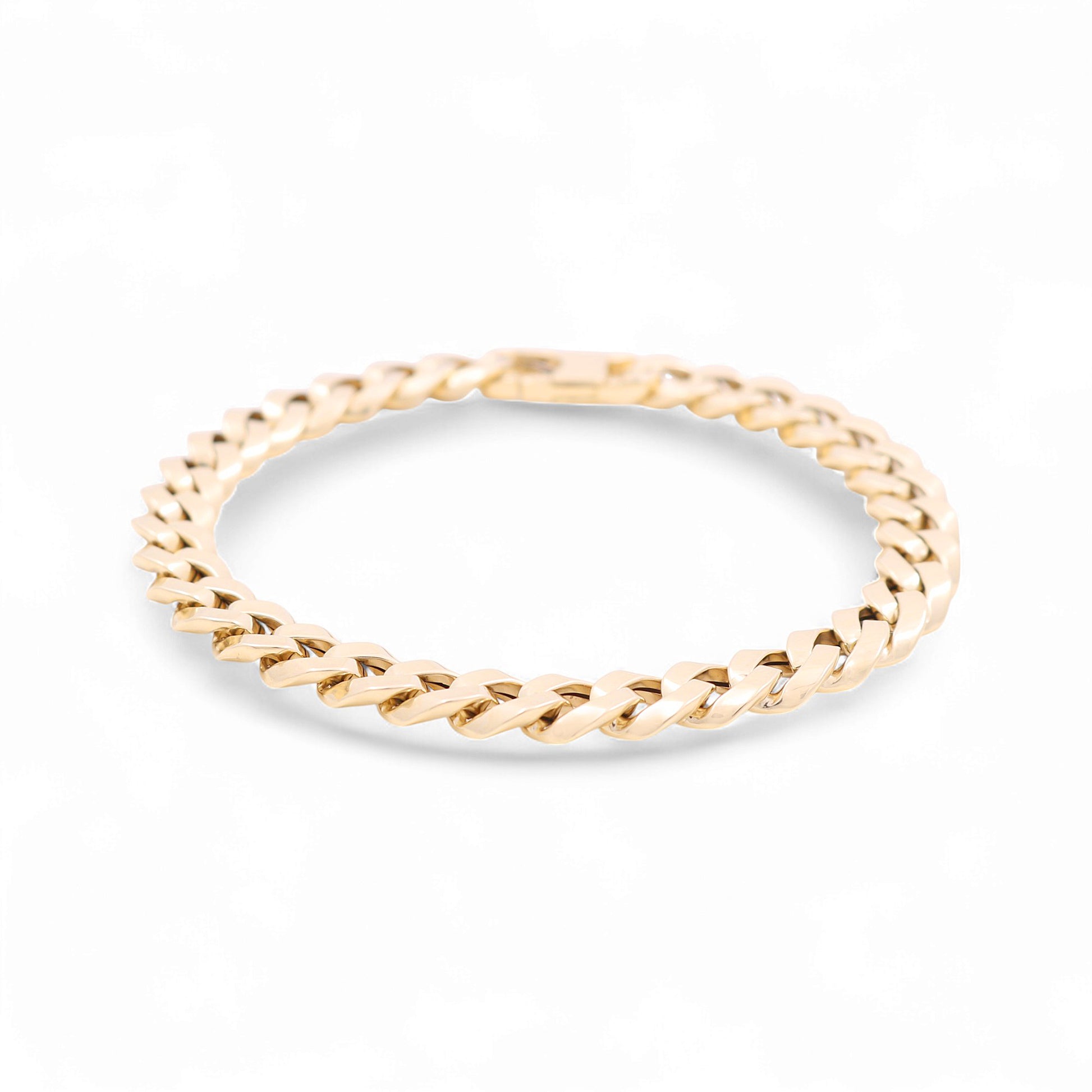 This 14K yellow gold semisolid Italian curb bracelet combines classic curb styling with a modern, lightweight feel. Measuring 8mm wide and 8.5 inches long, it delivers a strong look without the extra weight — perfect for daily wear with a bold twist.