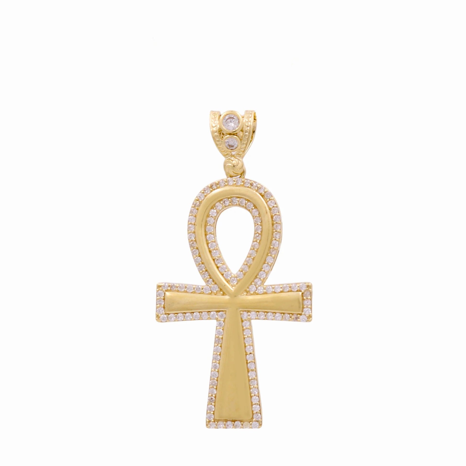 10K Yellow Gold Egyptian Cross Pendant with CZ