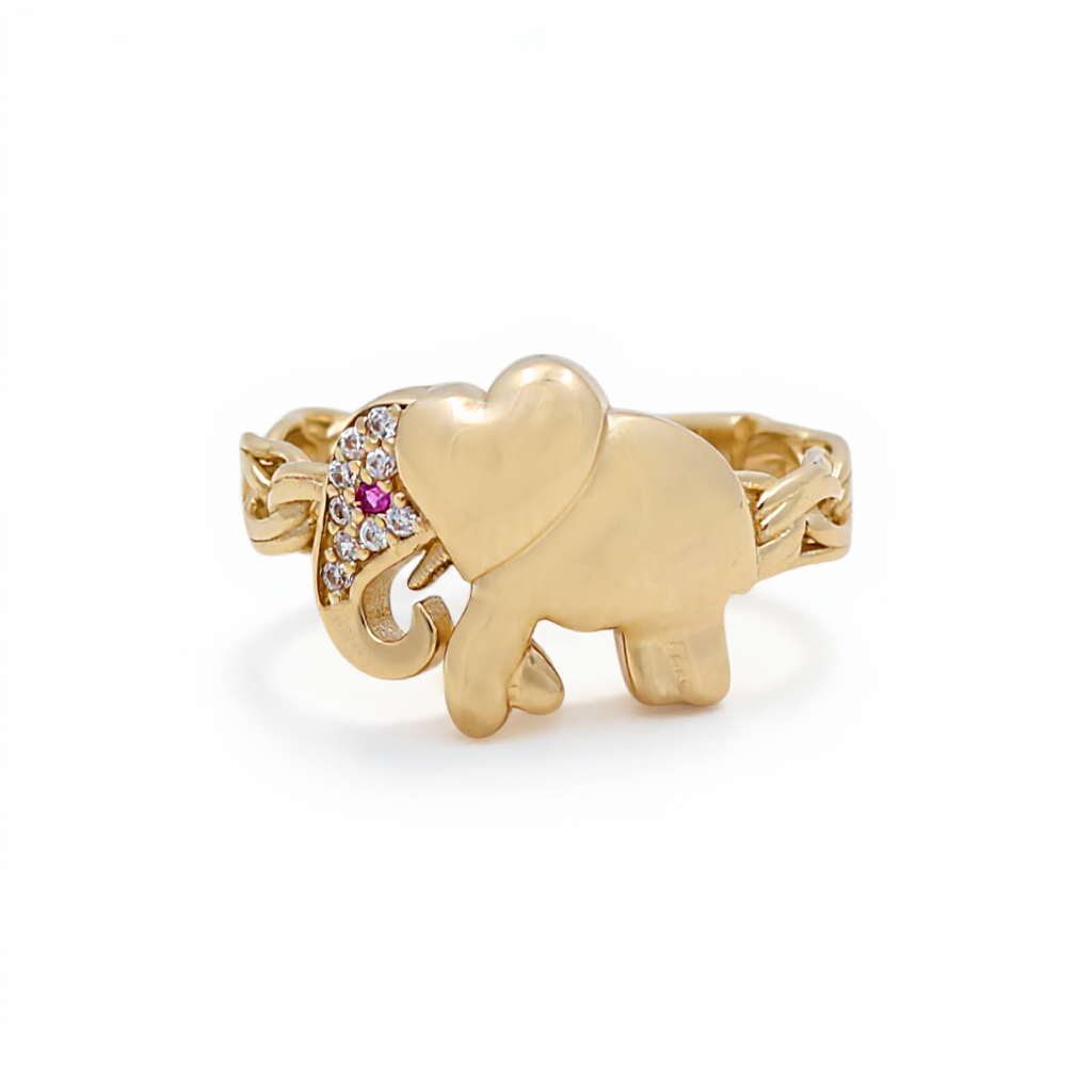 10K Yellow Gold Elephant Women's Ring with Pink CZ / Size: 8.5 / Weight: 2.7 GR / CQWR0EP