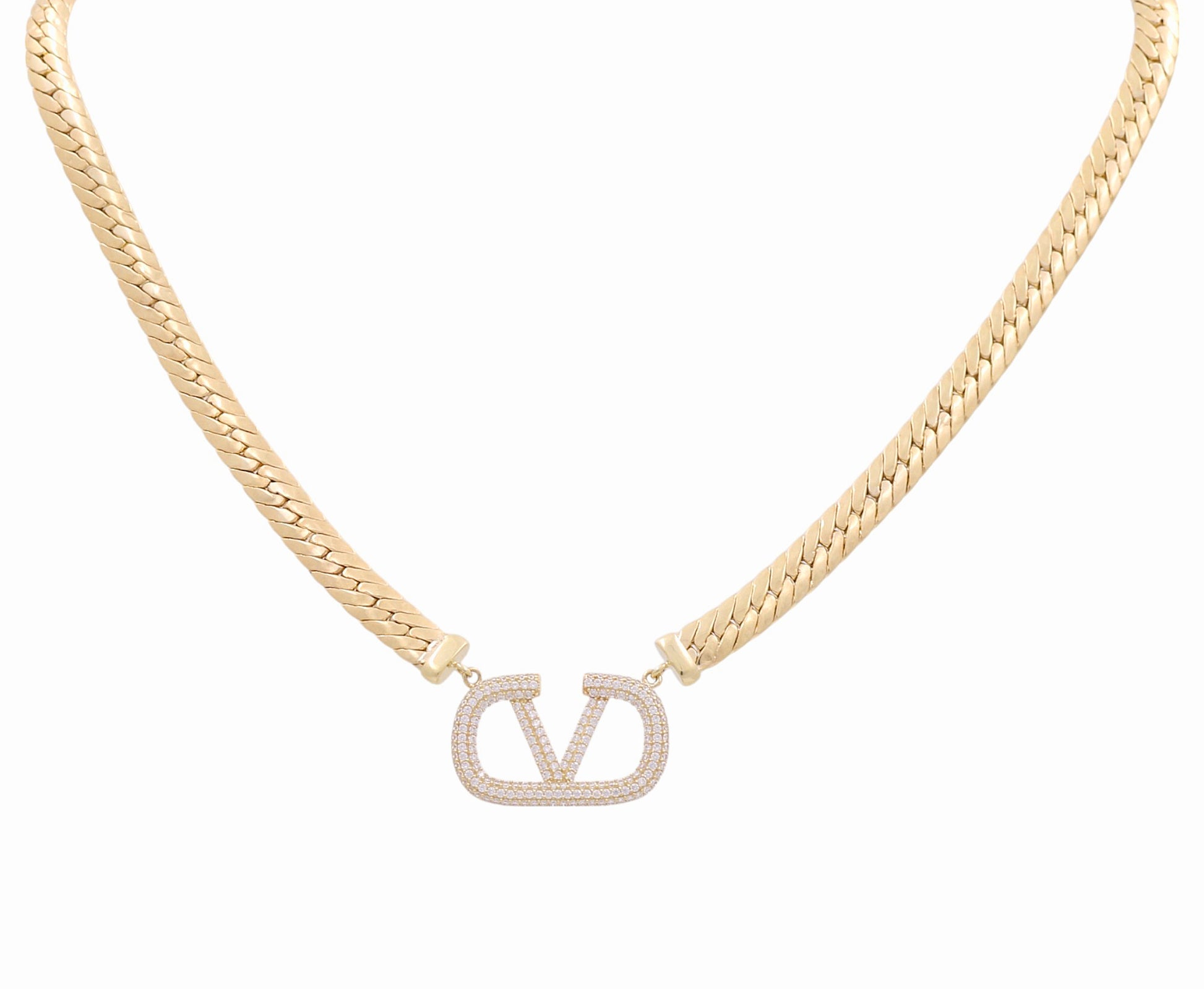 At 15.4 grams, it has a substantial presence without sacrificing comfort, making it perfect for both statement styling and layered elegance. The V design naturally draws attention to the neckline, adding structure and style to any outfit—from everyday wear to evening looks.