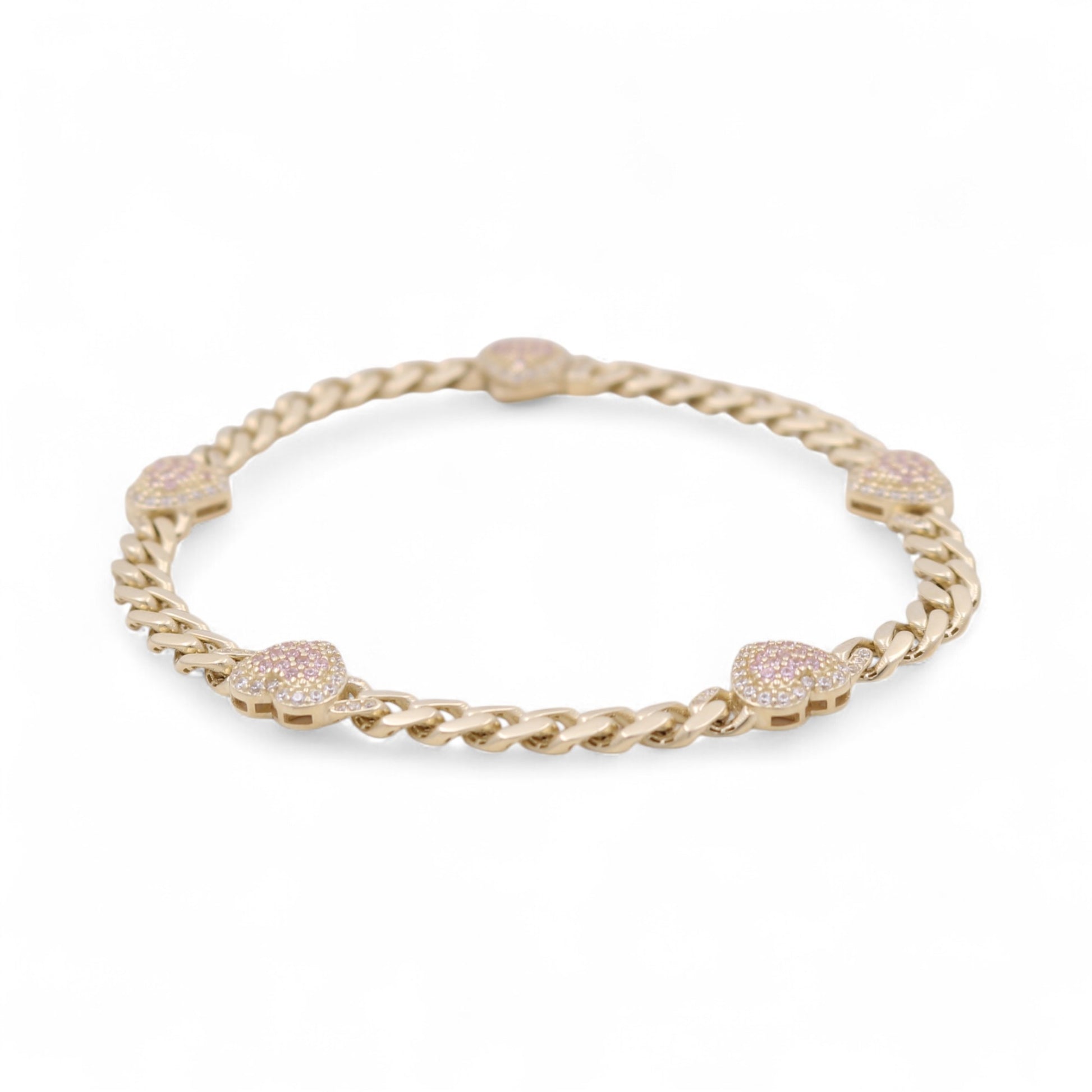 10K Yellow Gold Heart Monaco Women's Bracelet with Pink Cz / Size: 7.5” / Weight: 7 GR / CQWB0MONHR