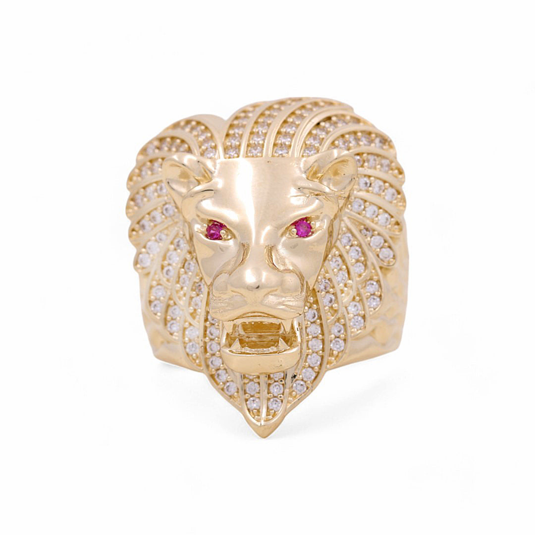 Make a bold statement with this stunning lion head ring! Crafted with 10K yellow gold and adorned with sparkling cubic zirconia stones, this ring is a symbol of strength, courage, and majesty. The perfect addition to any man's jewelry collection, this ring is sure to make heads turn and elevate any outfit. Command attention and exude confidence every time you wear it.