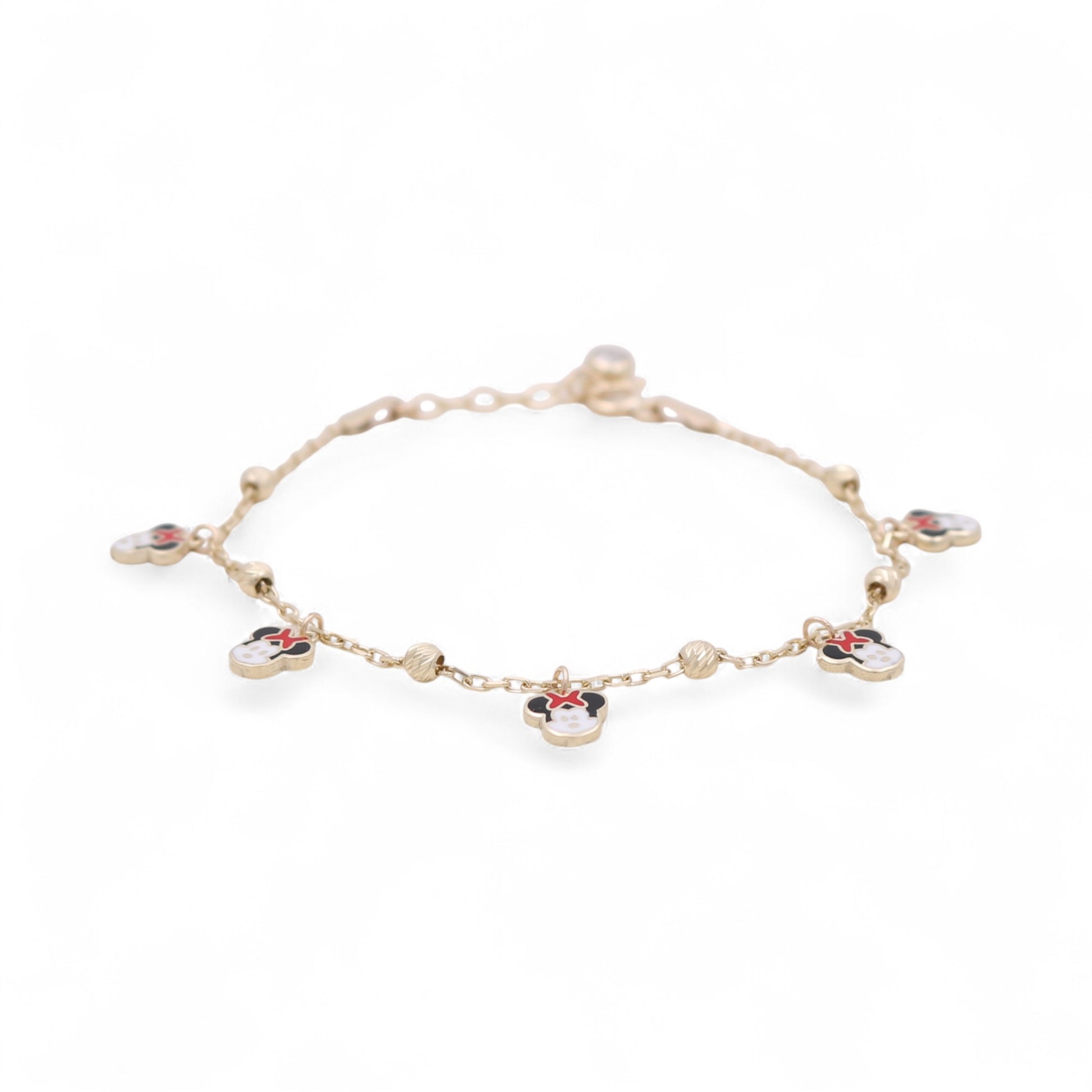 10K Yellow Gold Minnie Girl's Bracelet with Diamond Cut Balls / Size: 6" / Weight: 2.7 GR / CQWB0MN-1