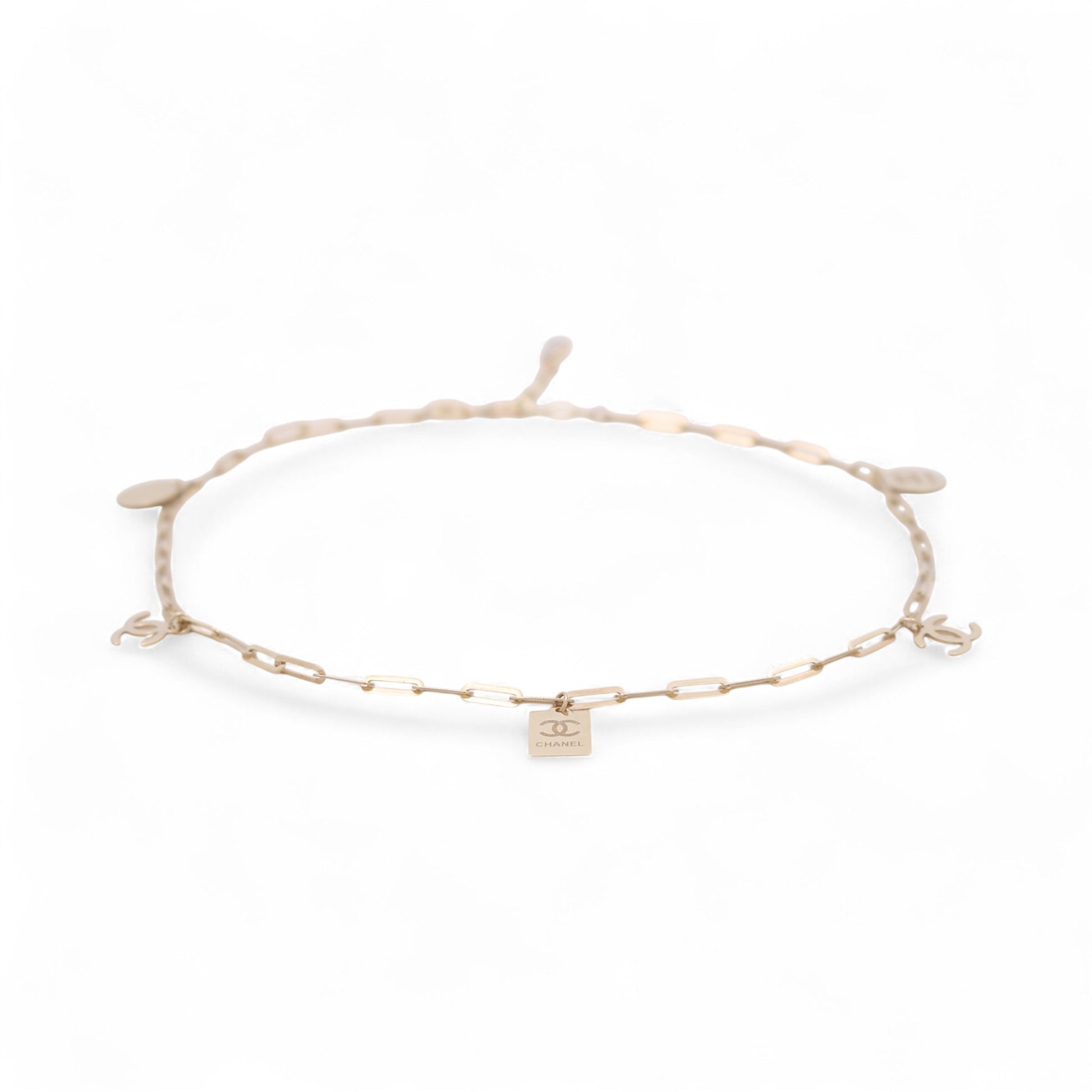 Chic Simplicity – 10K Gold Paper Clip Anklet with CC Charm